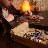 Each puzzle in the Animals series comes in four or three sizes. The bigger the size — the harder it is to build the puzzle and the more interesting the story inside it gets. The smallest ones are like trailers to awesome movies, while the Royal Size puzzles will take you on a journey with their own narratives and plot twists. The cuts of each size of each puzzle are unique and different. They are made by creative designers to take you deeper into the story and bring you as many amazing discoveries as possible.